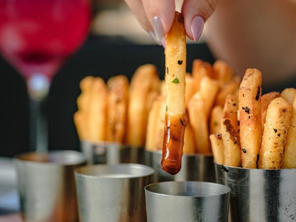 人気のフレンチフライは、メインメニューをご注文の方に無料で提供しているメニュー。トリュフ、パルメザン、ハーブのフレンチフライはアイオリソースやお好み焼きのソースにディップして食べるユニークな一品です。