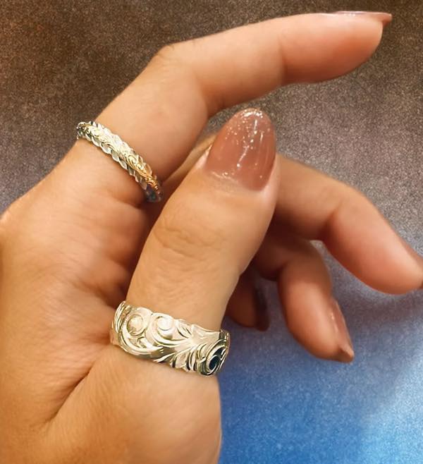当店オリジナルのオーダーメイドの商品。オリジナルのデザインを選んで頂いてこの世で一つだけの指輪を作ることが出来ます。デザインは、ツートーン(2枚重ね)にすることも可能です。日本でも使いやすいデザインばかりなのでぜひ店頭でご相談ください!