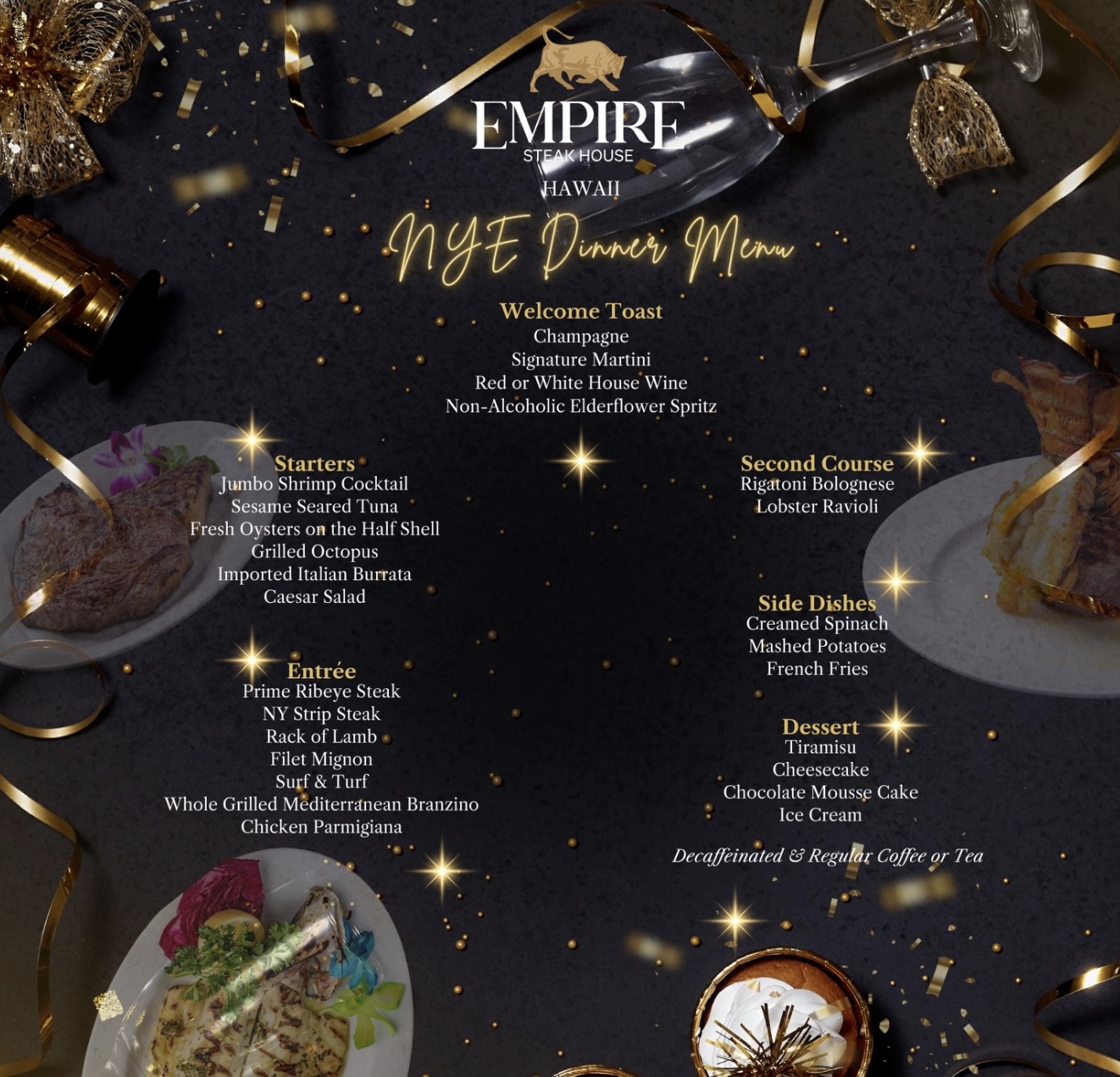 エンパイア・ステーキハウス・ハワイでは、2025年12月31日(水)の大晦日に、特別なディナ―タイムをご用意しております。