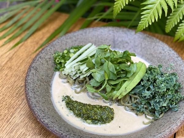 旅行中野菜不足になりがち。そんな時はぜひ、ジグへお越しください!ハワイ産のお野菜をたっぷりと使ったお料理を多数取り揃えております。ハワイで獲れた野菜を使用したヘルシーなケールヌードルは、なかなかな日本では味わえない麺料理ですが、胡麻だれ味なのできっとお気に召していただけるはず!