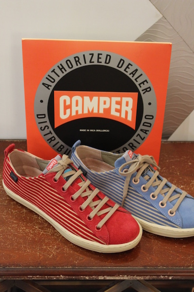 足元にワンポイント!スエードにストライプがおしゃれなスニーカーは赤/青ともに$120