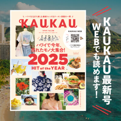 NEW ハワイのロイヤルハワイアンセンターでハロウィンを楽しもう!【お化け】や【モンスター】をテーマにしたキャラクターグッズや黒&紫色の食べ物など、ハロウィン気分が盛り上がるアイテムを大紹介! お役立ち情報&モデルプラン 2025/10/17 19:30 2025年版!カカアコエリアは4時間半でこう攻める!人気店とウォールアートを回るモデルプラン お役立ち情報&モデルプラン 2025/10/16 15:00 2025年 ハワイのハロウィン&秋のイベント情報まとめ!オアフ島各地で行われるお化け屋敷、パンプキンパッチ、期間限定ハロウィンバーなどの情報をお届け。 ツアー&体験 2025/10/15 17:00 【2025年最新グルメ情報】今ハワイで話題沸騰中、SUNTORYの新感覚チューハイ「マルハイ」って知ってる?ワイキキフードホールでローカルグルメとお得に乾杯しよう! レストラン&カフェ お役立ち情報&モデルプラン 2025/10/15 13:59 【10月17日】ハワイ大学アメフトの試合、松澤寛晴選手の活躍受け日本で初のライブ配信へ お役立ち情報&モデルプラン 2025/10/15 11:39 【KAUKAUマガジン最新号】2025年ハワイで本当に売れた人気商品34選を大特集!人気グルメ・お土産・アクティビティを総まとめ!ハワイで使えるお得なクーポンや最新情報も満載! お役立ち情報&モデルプラン 2025/10/15 09:00 【2025年最新】ハワイで「売れたモノ」全部見せ!人気グルメ&お土産&体験ツアー総まとめ34選|HIT of the YEAR ショッピング&お土産 ツアー&体験 レストラン&カフェ 2025/10/15 08:30 2025 ハワイで子供が思いっきり遊べる場所8選!雨の日でも安心、室内で遊べる場所と、ハワイの自然を感じながら遊べる屋外の場所をまとめました! お役立ち情報&モデルプラン 2025/10/14 17:00 2025年 ハワイのハロウィンイベントまとめ|子供向けトリック・オア・トリート&コスチュームコンテスト情報 お役立ち情報&モデルプラン ツアー&体験 2025/10/14 17:00 【2025年最新版】ノース・ショアでお買い物するなら!ハッピーハレイワ、グリーンルームなどハワイの人気ショップが集う「ハレイワタウンセンター」へ! お役立ち情報&モデルプラン 2025/10/10 17:00 【10月10日】アロハスタジアム・スワップミートが新ロケーションで10月15日から再始動 お役立ち情報&モデルプラン 2025/10/10 12:00 【2025年最新】ワイケレプレミアムアウトレットへの行き方9選!一番安い方法、自分にあった移動手段は? お役立ち情報&モデルプラン ツアー&体験 2025/10/08 17:00 【2025年最新版】JALホノルルマラソンの魅力を徹底解説!ビギナーからベテランまで、誰もが主人公!アロハスピリッツに溢れた大会の魅力とは?ランナーはもちろん、走らない人のホノマラ観戦術も大公開! お役立ち情報&モデルプラン 2025/10/06 17:00 【2025年最新】ハワイの朝はココで過ごす!ワイキキに登場したおしゃれカフェ「ショアラインカフェ」のコーヒー&ペイストリーが美味しい! レストラン&カフェ 2025/10/03 17:00 【2025年】秋のハワイを彩るANA主催の音楽イベント「ANA ʻAha Mele (アハメレ)」が11月19日〜22日の4日間開催!辻井伸行さんに加え、日本からジャズアーティストも参加し、さらに豪華なイベントに! ツアー&体験 2025/10/03 09:32 【10月3日】カイザー・パーマネンテのハワイの医療スタッフが10月14日から5日間ストライキへ お役立ち情報&モデルプラン 2025/10/03 09:00 ハワイの10月の気候(天気)・服装はどんな感じ?10月にハワイで行われるイベントもご紹介 お役立ち情報&モデルプラン 2025/10/01 17:00 2025年9月 ハワイのカフェ・レストランの新店舗情報!ワイキキに新ステーキ店登場、人気のピザ屋さんやアイスクリーム店の実店舗がオープンなど、気になる新店舗合計8店! レストラン&カフェ 2025/09/29 17:00 2025年11月のハワイのイベント情報!ハワイ・フード&ワインフェスティバルが開催!オアフフェスティバルなどのワイキキで行われるブロックパーティー情報も! ツアー&体験 2025/09/26 17:00 【9月26日】テイラー・スウィフトがハワイの映画館に登場!特別上映イベント「Life of a Showgirl」3日間限定で開催 お役立ち情報&モデルプラン 2025/09/26 09:00 ハワイのロコ御用達!ポケボウルやプレートランチの超穴場!ダイヤモンドヘッド近くの老舗ローカルストア「フォートルガーマーケット」って知ってる? レストラン&カフェ 2025/09/24 18:00 【ハワイではルール違反!】歩きスマホで横断、飲酒、タバコ、ジェイウォーク…。ハワイの公共ルールまとめ お役立ち情報&モデルプラン 2025/09/22 17:00 【2025年最新版】ハワイのポケ(ポキ)完全ガイド!人気の味・種類からユニークポケまで徹底紹介 お役立ち情報&モデルプラン 2025/09/19 17:00 【9月19日】シェイクシャック、2027年にハワイ初上陸へ ハワイ限定フレーバーも登場予定 お役立ち情報&モデルプラン 2025/09/19 09:00 ハワイで最高の夜が楽しめる!「アロハアミーゴ・アイランド・メキシカン・カンティーナ」のお得なパーティーコースがすごい! JCBカード特典 団体予約 レストラン&カフェ 2025/09/17 15:30 2025年版!ハワイ・ワイキキで人気のお土産店や雑貨店16店を4時間でぐるっと回るモデルプラン!ハワイ