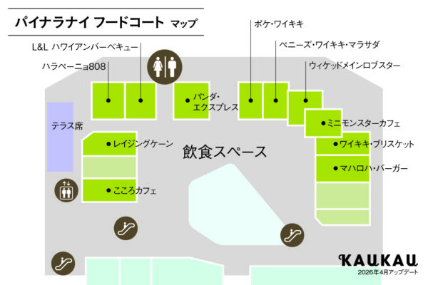 ワイキキ中心部で現在10店舗ものお店が集合しているロイヤルハワイアンセンターのフードコート、「パイナラナイフードコート」をマップ付きで徹底解剖♪