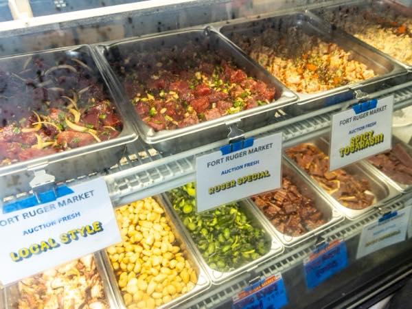 ロコ御用達の日系スーパー「タムラズマーケット」で販売されているポケはハワイの地元新聞 Star Advertiserの「年間ベスト ポケ」に何度も選ばれたことがあり、こちらのポケを求めてわざわざ足を運ぶファンも多いという名物グルメ。魅力はなんと言っても種類の豊富さ。ハワイNO.1と言われるほど!