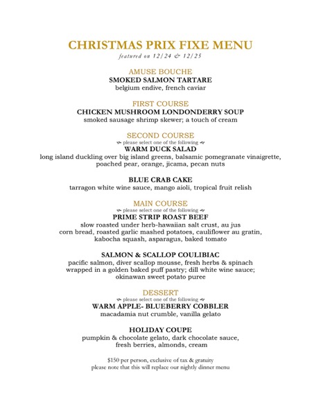 ハワイの有名レストランでクリスマス&ホリデーディナーの特別メニューがあるレストランをまとめました。