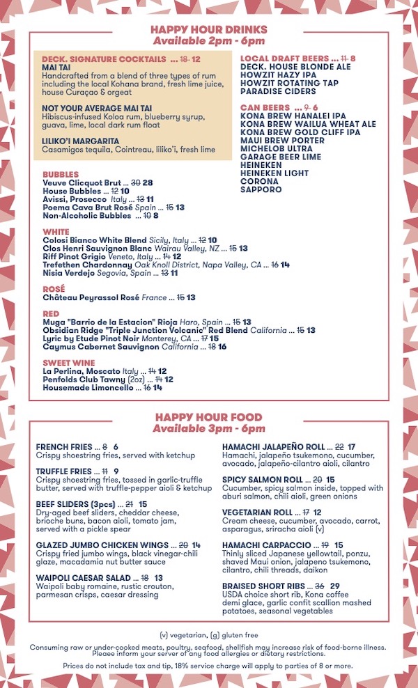 これはなかなか太っ腹ハッピーアワー!予約が取りづらいお店としても有名な人気店なのですが、ハワイ旅行の際はぜひハッピーアワーを狙って来店することをおすすめします!