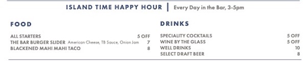 こちらもインターナショナルマーケットプレイスにあるレストラン「イーティングハウス1849」のハッピーアワーはメインダイニングでは毎日16:00〜17:00、バーでは16:00〜18:00の時間帯で行われています。