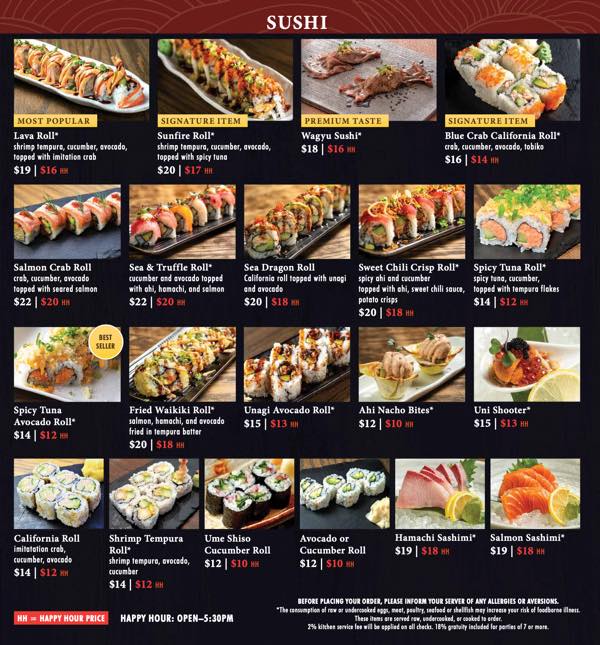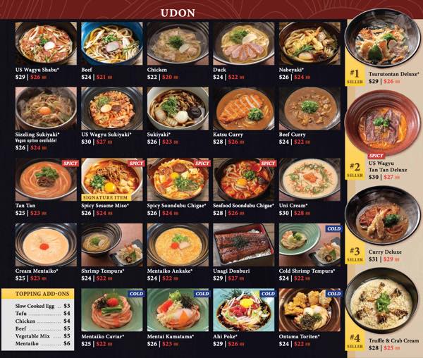 また、通常のハッピーアワーでは、おうどんからお寿司、おつまみになりそうな一品メニューが通常料金よりも$1〜$3もお得にオーダーできます。シークレットハッピーアワーと比べると適用されるメニュー数が多いので、色々な料理をお得に楽しみたい人は通常のハッピーアワーもおすすめです。