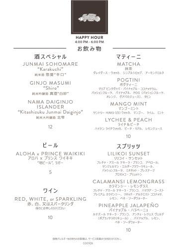 ハッピーアワーメニューはこちらから>>