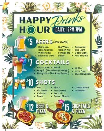 アロハアミーゴ・アイランド・メキシカン・カンティーナでは、月〜金曜の16:00〜18:00の時間帯でハッピーアワーを行なっています。