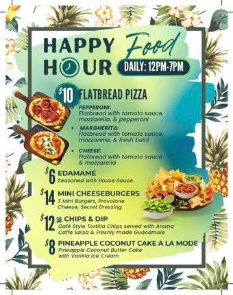 ハワイ初のシルクドソレイユも楽しめるホテル「アウトリガー・ワイキキ・ビーチコマー・ホテル」内の人気カフェ「ハワイアンアロマカフェ」でも、毎日12:00〜18:00までハッピーアワーを実施中。