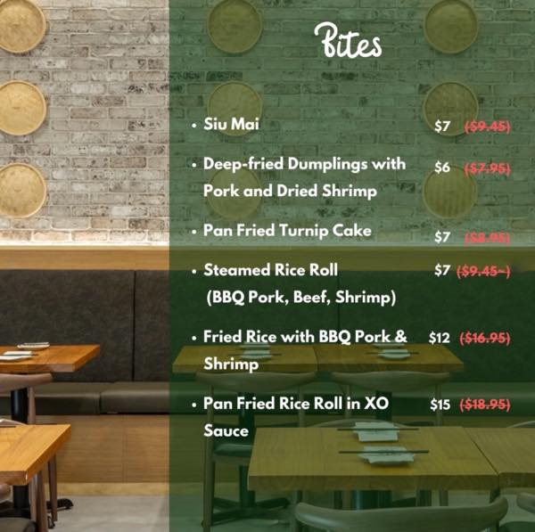 そして金〜日曜日のウィークエンドハッピーアワーでは、シュウマイ、揚げ餃子、ライスロール、フライドライスなど、計6品が$6から楽しめます。