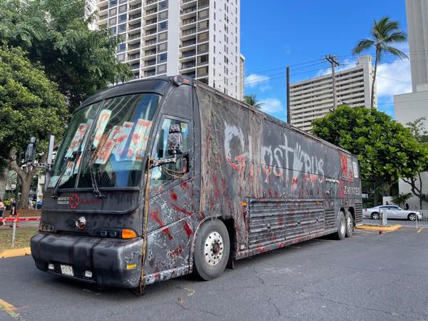 2021年10月、ワイキキに突如登場した「ゴーストバス」。なんとバスの中がお化け屋敷になっている…!?ということで話題に。ワイキキの街を歩くたびに目にしていたこのゴーストバス。中はどうなっているんだろう!?と気になっていたんです。オミクロンの流行により一時的に営業を停止していましたが、2022年3月1日から復活!ということで早速体験をしに行ってきました。