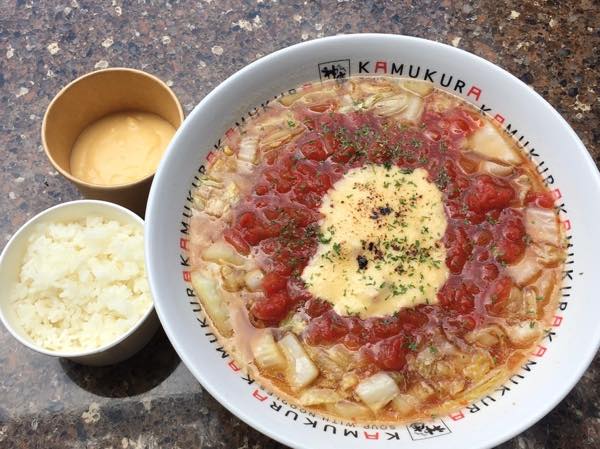 神座のおいしいラーメンにトマトソースととろ〜っととろけるチーズがトッピングされた斬新なラーメン!