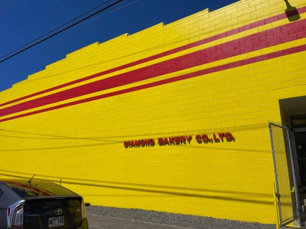ちなみにダイヤモンドベーカリーの工場は黄色と赤色のとても目立つこんな建物!カリヒエリアにあるポイドーナツで有名なカメハメハベーカリーがある場所から歩いて10分ほどの場所です。