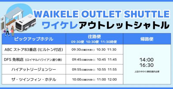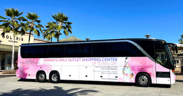 2025年9月より、「ワイケレプレミアムアウトレット」でも、ハワイ・スーパー・トランジットとの提携で往復シャトルバスが運行をスタートしました。運賃は片道$15、往復$20となっています。