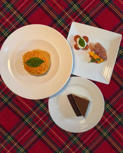 デザートには、ホワイトチョコチーズケーキや抹茶ムースタルト、ブラックセサミバタースコッチ、カラカラオレンジでマセラートしたストロベリーの盛り合わせ「Santa’s Treat」が用意され、華やかで満足感のあるディナーを楽しむことができます。
