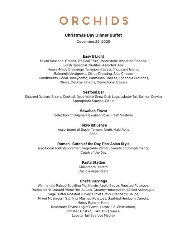 ワイキキの人気レストラン、「ロイズ・ワイキキ」では、2025年のクリスマスシーズンに向けて特別なプリフィックスメニューを提供しています。ディナータイム限定(16:30〜21:30)のコースで、アラカルトの注文は不可。クリスマスらしい華やかな料理が揃います。