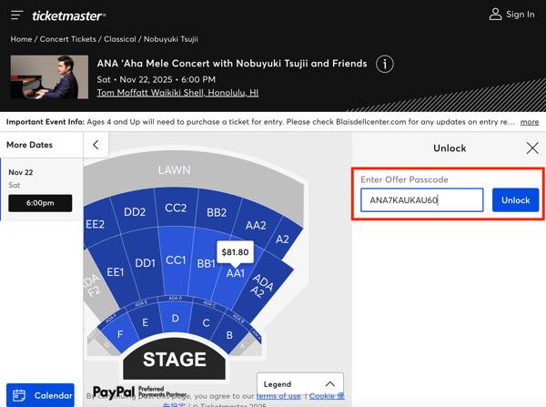 そして今回、11月22日に「トム・モファット・ワイキキ・シェル」で行われるガラコンサートのチケット購入の際に使えるKAUKAU読者限定の特別コードを発行していただいたので、そちらも併せてご紹介します。