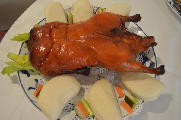 フックユエンで外せないのが、看板メニューの北京ダック。丁寧に焼き上げられたダックは、皮はパリッと香ばしく、肉はジューシー。