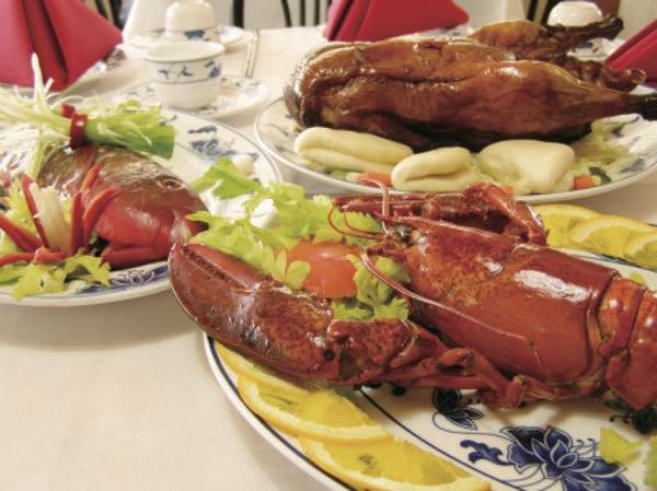 フックユエン・シーフードレストランの特徴は活ロブスター料理。ガーリックバターやブラックビーンソースなどでいただくロブスターはぷりぷりで絶品。