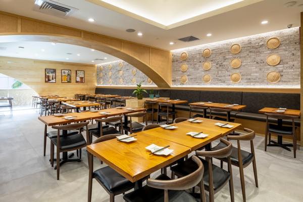 店内は、広々とした落ち着きのある空間が魅力。大きな円卓も多く配置されており、家族やグループでの利用にもぴったりです。