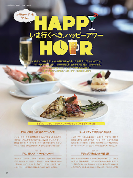 レストランで食事やドリンクをお得に楽しめるハッピーアワーは、ハワイでも大人気!今ハワイで行きたいハッピーアワーを、さらにお得なKAUKAU限定のクーポン付きでご紹介しています!ハッピーアワー&クーポンを活用して、お得にハワイを楽しんでください。