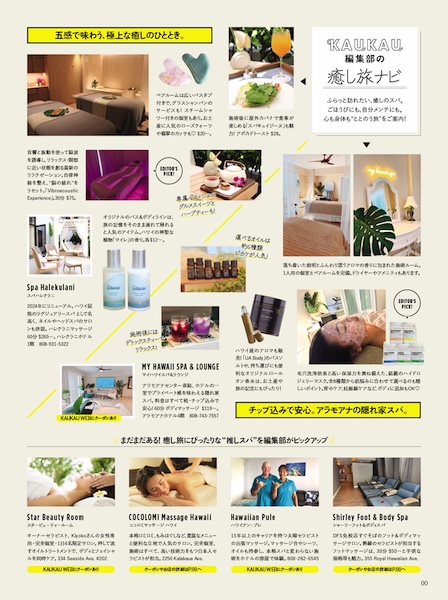 ロミロミ、フットマッサージ、ヘッドスパ…、一年間の疲れをハワイのスパで癒しませんか?至極のラグジュアリースパから、気軽に受けられる街スパまで、編集部のおすすめマッサージ店をご紹介しています!
