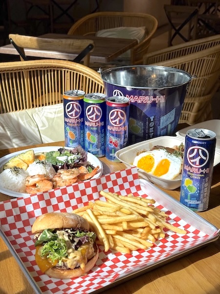 フードとのペアリングで真価を発揮する「マルハイ」。ハワイならではの濃厚なローカルフードと組み合わせると、その爽やかさがより際立ちます。