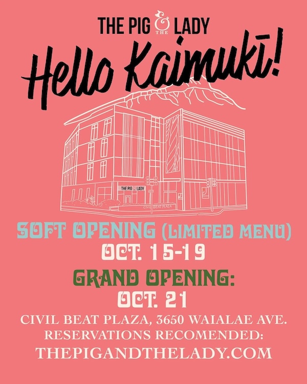 【10月14日】人気レストラン「The Pig and the Lady」がカイムキに移転オープン