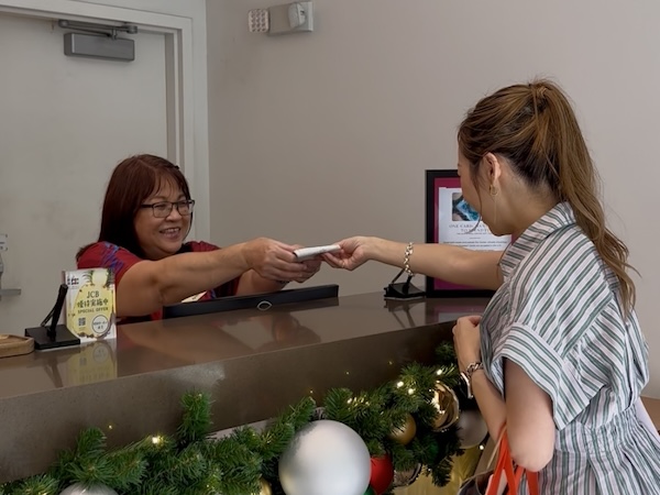 4枚のレシートを持って1階ゲストサービスに向かうと、スタッフの方がレシートの内容を確認して、その場で YETI 16oz Stackable Cup を手渡してくれました。
