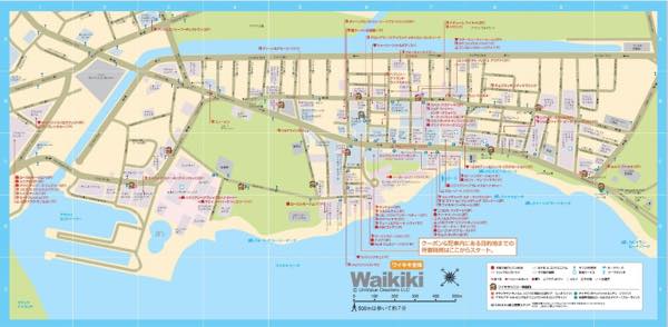 ワイキキマップも掲載。ワイキキエリアのショップ、レストランがパッと一目でわかるので手元にあると何かと便利です♪