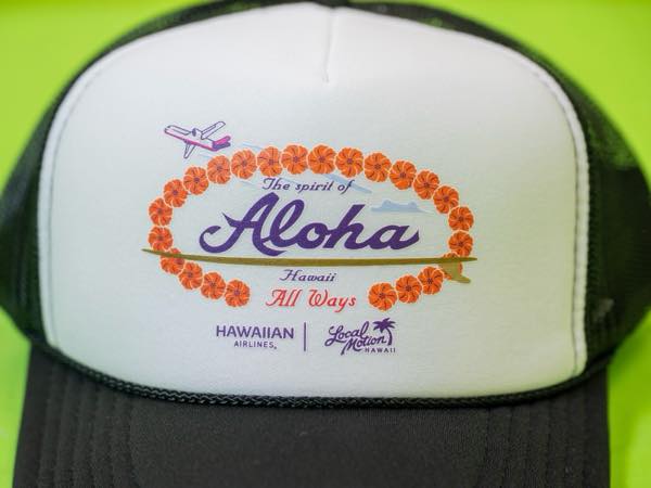 また、中央にはローカルモーションのスローガンである「ALOHA ALL WAYS」を配置。飛び立つハワイアンエアラインの機体や2社のロゴをあしらうなど、コラボ感があり、なおかつハワイのアロハスピリットを感じさせてくれる楽しげなデザインが印象的です。