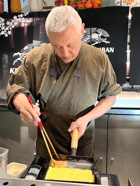 目の前で卵焼きを焼いてくれるライブ感も楽しい!日本のお寿司屋さんではカウンター越しに調理シーンを見られることはなかなかないので、最初からテンションがあがっちゃいます♪大亀さんの心意気が感じられるこんな演出も見どころの一つです。