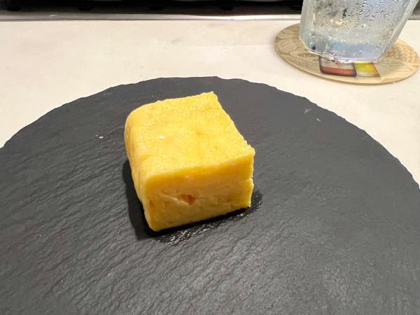 まず 1品目は、ハワイのローカルエッグを使った卵焼き。ほんのり甘く上品な味わいで、これから始まるコースへの期待を高めてくれる一品です。