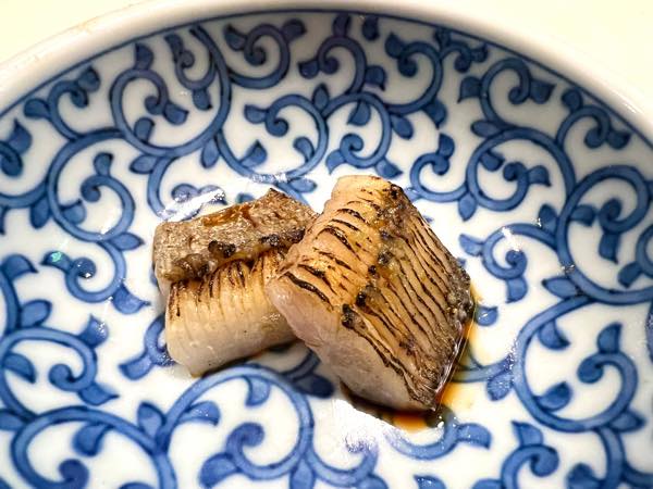 続いて、長崎産の上質な海苔とともにいただくホタテのいそべ焼きは、炙ったホタテの香りや甘みを海苔の豊かな磯の香りが包み込み、深くて奥行きのある味わいを奏でます。