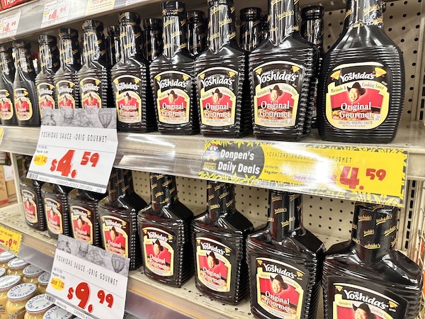 ハワイのドン・キホーテで販売中の「ヨシダソース(Yoshida's Gourmet Sauce)」。甘辛いテリヤキ風味で、肉・魚・野菜、さらにはBBQや炒め物、マリネまで幅広く使える万能ソースです。