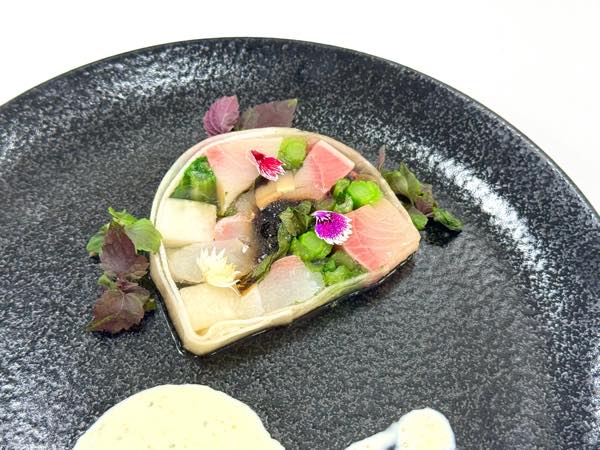 ・魚のテリーヌ・ド・ポワゾン〈ぶり大根〉 みかんぶり・みかん鯛の昆布締め 大根と旬野菜とともに