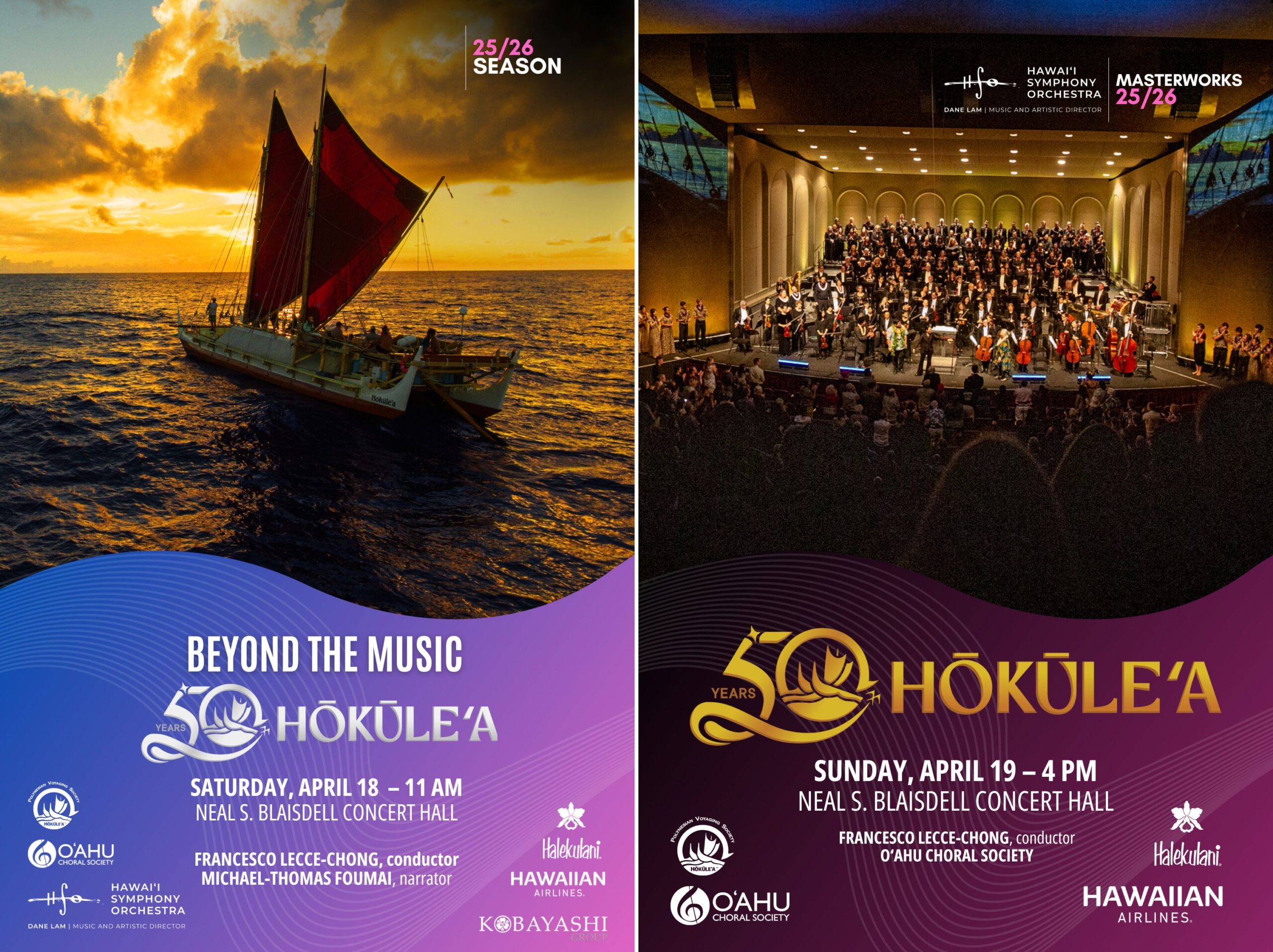 ハワイ交響楽団は、Hōkūleʻaの50周年を祝う特別コンサート「Hōkūleʻa 50」を2026年4月19日(日)午後4時、ニール・S・ブライズデール・コンサートホールで開催します。このコンサートでは、ハワイの作曲家マイケル・トーマス・フォウマイによる壮大な合唱交響曲『Raise Hawaiki』が初演され、Hōkūleʻaの航海とポリネシアの伝統的な航海術を讃える内容となっています。