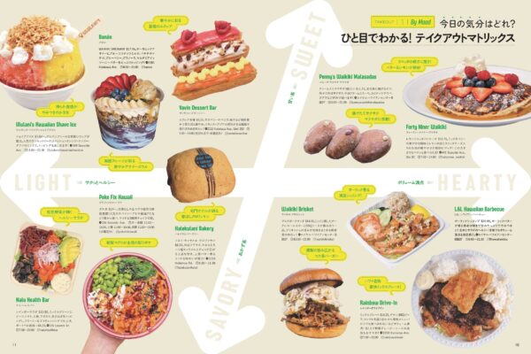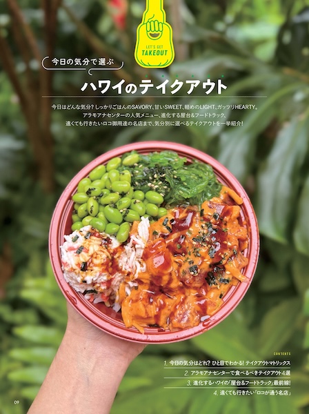 今日の気分で選べるテイクアウトマトリックスや、アラモアナセンターの人気メニュー、ハワイで進化しているマーケットの屋台やフードトラック、遠くても足を伸ばして行きたいロコ御用達の名店まで、気分別に選べるテイクアウトを一挙紹介!
