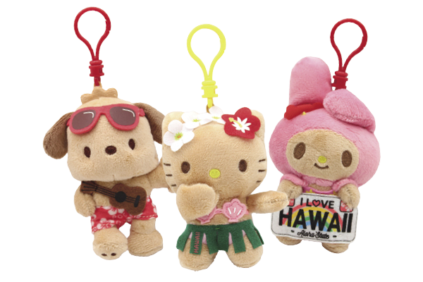 日焼けしたキティちゃんやポチャッコなどレア感満点!カバンや鍵に付けて持ち歩けば、ハワイ旅の思い出といつでも一緒!$18.99/約10×6cm