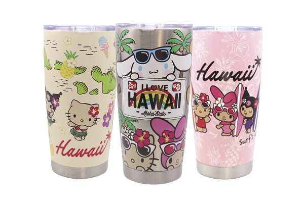 ハワイらしいモチーフと日焼けした人気キャラクターたちが彩るトロピカルなタンブラーは真空断熱で保温・保冷も◎ $29.99/20oz