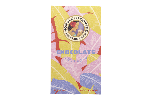 マノアチョコレートコラボの70%カカオチョコレートバー。ドラゴンフルーツパウダーやハワイアンシーソルトを贅沢に配合。$14.95/容量:60g
