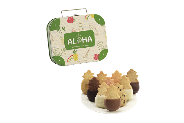 パイナップル型が可愛いハワイ土産の定番クッキー。バターの風味豊かなショートブレッドに、チョコレートディップやコナコーヒーなど、ハワイらしい味が勢揃い!季節限定フレーバーも多数!