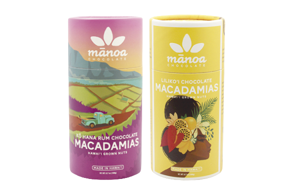 カカオニブにラムの香りを加えた濃厚ダークチョコのコハナラムとパッションフルーツの甘酸っぱく爽やかなリリコイ味。$18.00/189g
