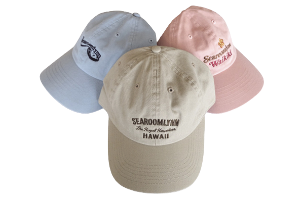 ハワイ店限定のオリジナル刺繍が可愛い!くすみカラーでどんなコーデにも合う、ベージュ、ピンク、ブルーの3色展開。$54
