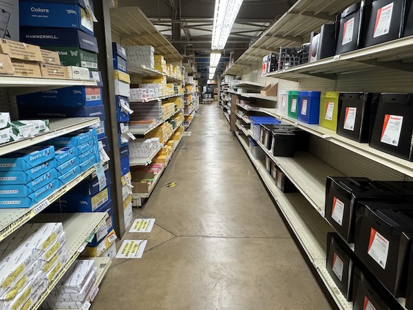 倉庫のような店内には、ところせましと文房具が・・・お土産にアメリカの文房具を探してみるのもイイかも。