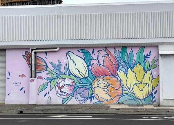 パタゴニアやユーロハがあるあたりから、海側に向かってワード通りを歩いていくとあるのが、こちらの壁画!