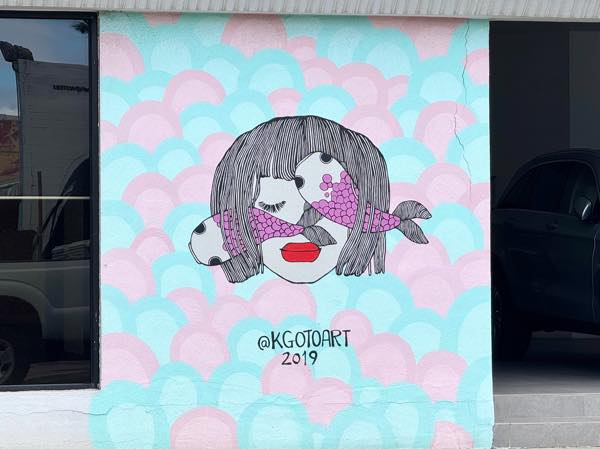クック通りの人気アート。アラモアナセンターにあるターゲットの壁画も手がけたクリス・ゴトウの作品。個性的でポップな色合いが目を引きます。