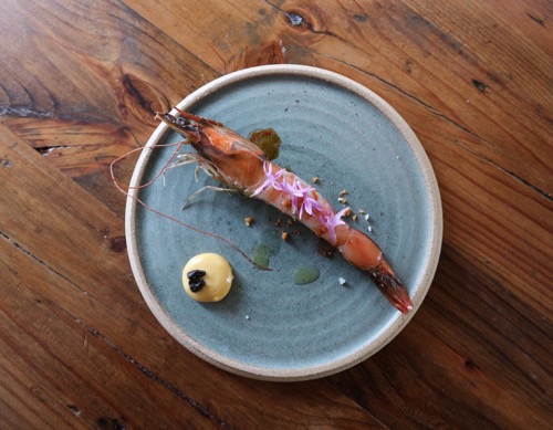 新鮮で大ぶりなカフク産の海老は$26.00(写真奥)。